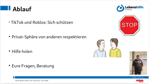 Am 18. März waren die Peer-Berater*innen für digitale Barrierefreiheit im Einsatz in Eidelstedt. In der Beruflichen Schule BS24, die zum Berufsbildungswerk gehört, gaben die Peers eine Beratung für zwölf Schüler*innen mit kognitiven Beeinträchtigungen zwischen 16 und 18 Jahren.